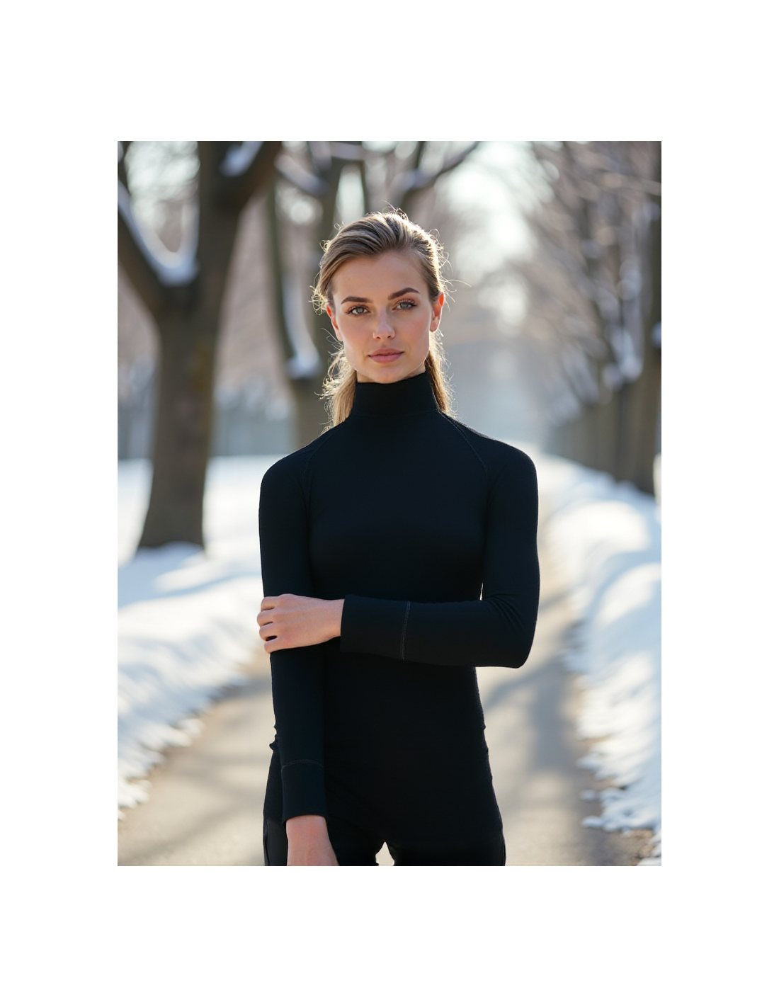 Mooi thermo shirt van Gino Santi met lange mouwen in het zwart voor Dames. Het thermo shirt is gemaakt van een holle vezel viloft waardoor het uitstekend isoleert, ideaal als onderlaag voor de koude barre temperaturen buiten. De shirts voelen erg zacht aan en zijn afgewerkt met een hoge aansluitende boord om u zo warm mogelijk te houden