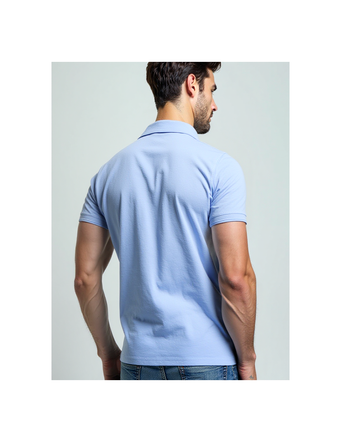 Mooie blauwe polo van Gino Santi. Deze polo is voor zien van merklogo op de borst en heeft een mooi afgewerkte dubbele rand op zowel de kraag als de mouwen.